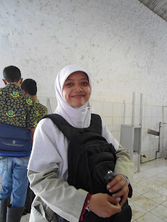 Adzan Dzuhur berkumandang, waktunya sholat dan makan. Karena tempat wudhu hanya ada satu ruang sempit untuk laki-laki dan perempuan maka beberapa dari kami mencari toilet. Toilet yang ku temukan sangatlah sepi dan tidak terawat, kamungkinan waktu malam tempat ini juga menyeramkan, ditambah lagi di dekatnya ada sebuah gedung tua yang juga tidak terawat. Setelah selesai sholat kami yang wudhu di toilet seram itu baru tahu kalau ternyata ada toilet baru yg lebih kinclong. Alamak..