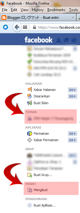 3. Mengelola daftar teman dan daftar minat. Solusi terakhir ini sedikit rumit, namun sangat sesuai bagi orang tengahan, alias terlalu populer untuk ukuran orang biasa, namun juga terlalu biasa untuk ukuran orang populer. Daftar tersebut dapat anda temukan dan anda buat dari menu di bilah kiri halaman beranda (lihat gambar). Caranya mirip dengan pengelolaan daftar minat untuk halaman seperti yang sudah saya jelaskan dalam tulisan sebelumnya yang berjudul "Mengelola Daftar Minat untuk Membuat Facebook Lebih Bermanfaat"